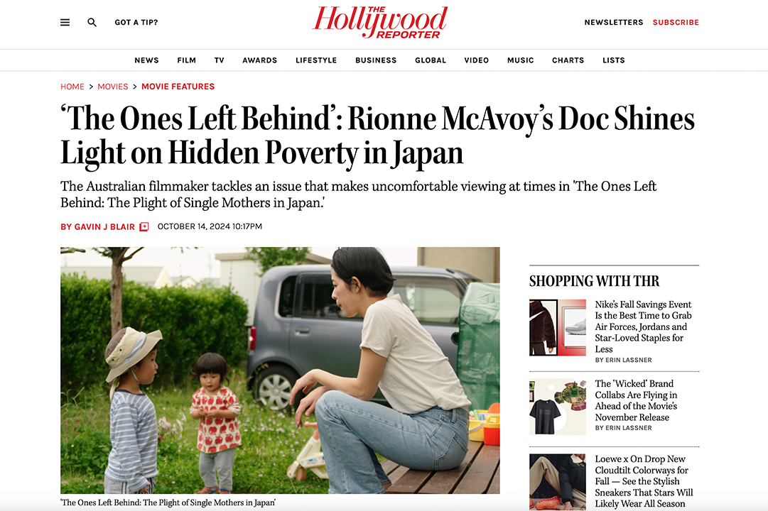 TOKYO, JAPAN, October 15, 2024 — The critically acclaimed documentary "The Ones Left Behind: The Plight of Single Mothers in Japan", directed by filmmaker Rionne McAvoy, has been spotlighted in The Hollywood Reporter as part of a feature on groundbreaking documentaries that shine a light on social issues across the globe. This thought-provoking film exposes the hidden poverty faced by single mothers in Japan, offering an unflinching look at the challenges they endure while raising children in a society that often marginalizes their struggles.